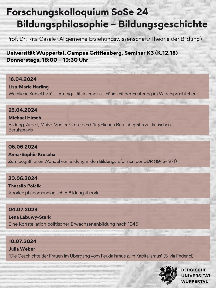 Forschungskolloquium Bildungsphilosphie - Bildungsgeschichte (SoSe 2026)