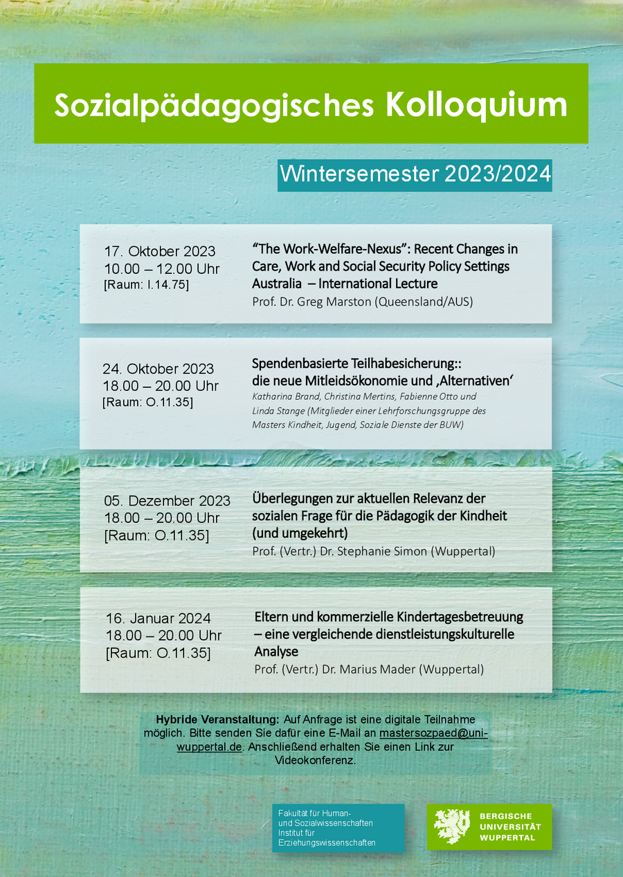Hier finden Sie das Poster zum Sozialpädagogischen Kolloquium im Wintersemester 2023/24.