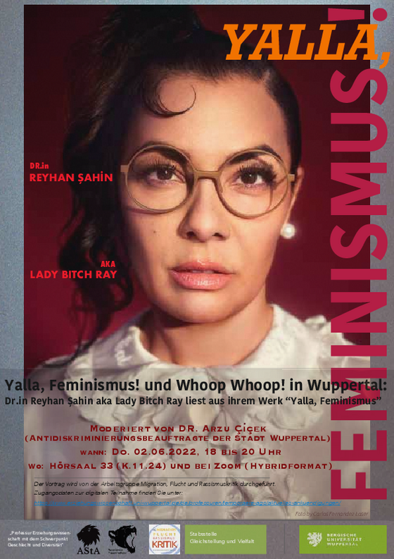 Dr. phil. Reyhan Şahin, ist Sprach-, Migrations-, Islam- und Rassismusforscherin, Buchautorin, Rapperin und Performance-Künstlerin. Sie befasst sich aus intersektionaler Perspektive mit den Themen antimuslimischer Rassismus, Antisemitismus, Islamismus und islamischer Feminismus. Dr. Reyhan Şahin engagiert sich für Frauen-, trans und queere Solidarität, marginalisierte Menschen, bricht mit Sex-Tabus und macht deutlich, dass sich Kopftuch, Modebewusstsein und Feminismus keineswegs ausschließen.
