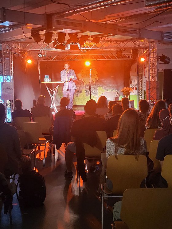 Der „poetry ohne slam“ fand an der Bergischen Universität Wuppertal zum ersten Mal statt. Zum Thema „Migration, Krieg und Klimakrise – Wie können, wie wollen wir zusammenleben?“ konnten verschiedene Kunstbeiträge eingereicht werden. Daraus entstand am 17.5. innerhalb der public climate school der students for future wuppertal eine vielfältige Veranstaltung mit einem großen Publikum.