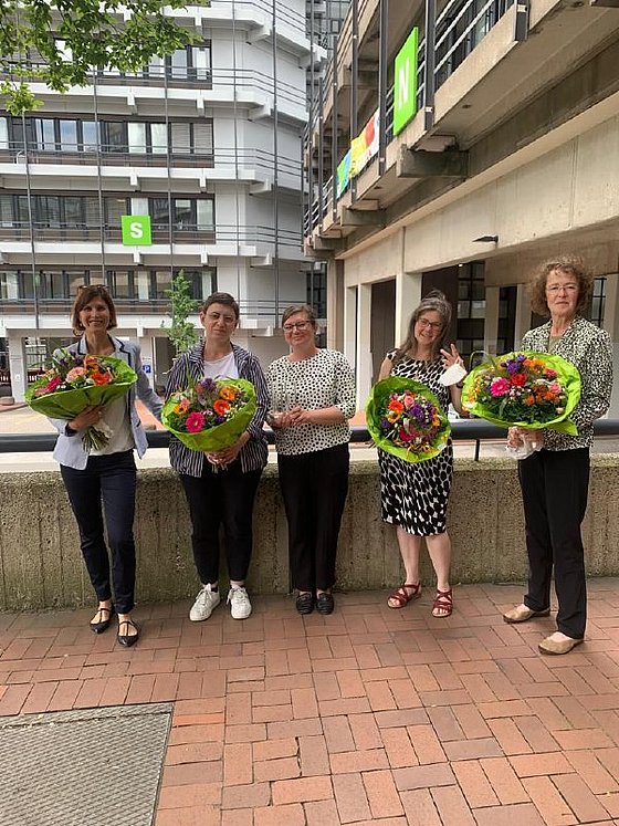Foto (von links nach rechts): Jun.-Prof. Dr. Cécile Stephanie Stehrenberger (Geschichte), Loriana Metzger M.A. (Erziehungswissenschaft), Dr. Agnes Laba (Geschichte), Dr. Steffi Grundmann (Geschichte), Prof. Dr. Astrid Messerschmidt (Erziehungswissenschaft)