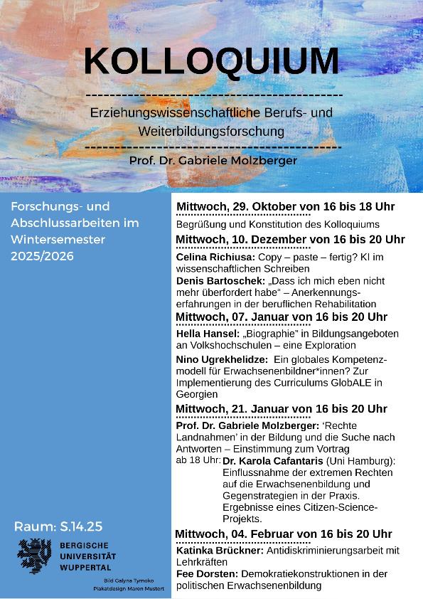 Kolloquium: Erziehungswissenschaftliche Berufs- und Weiterbildungsforschung im Wintersemester 2025/2026