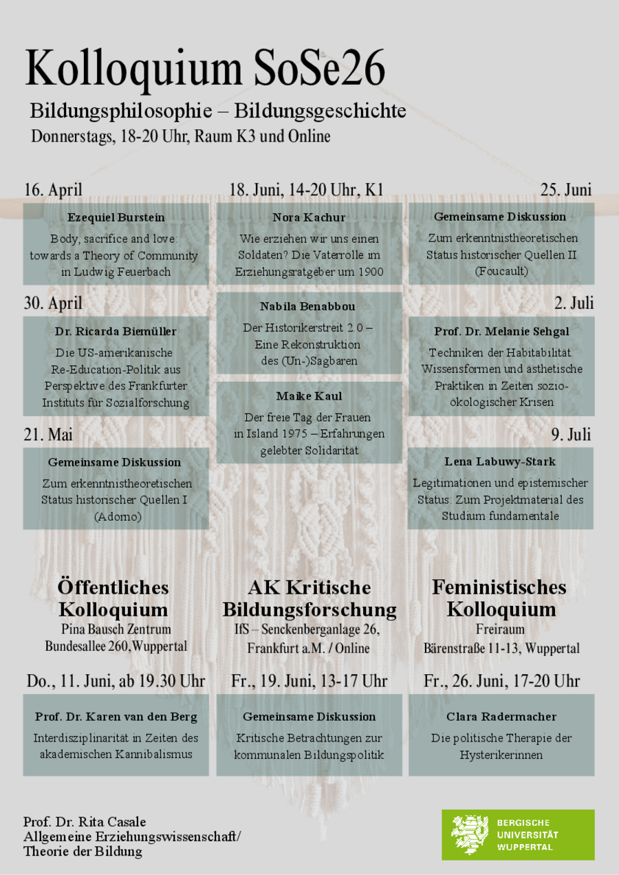 Forschungskolloquium Bildungsphilosphie - Bildungsgeschichte (SoSe 2026)