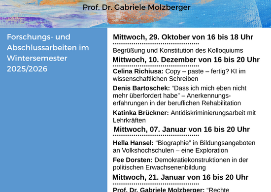 Kolloquium: Erziehungswissenschaftliche Berufs- und Weiterbildungsforschung im Wintersemester 2025/2026