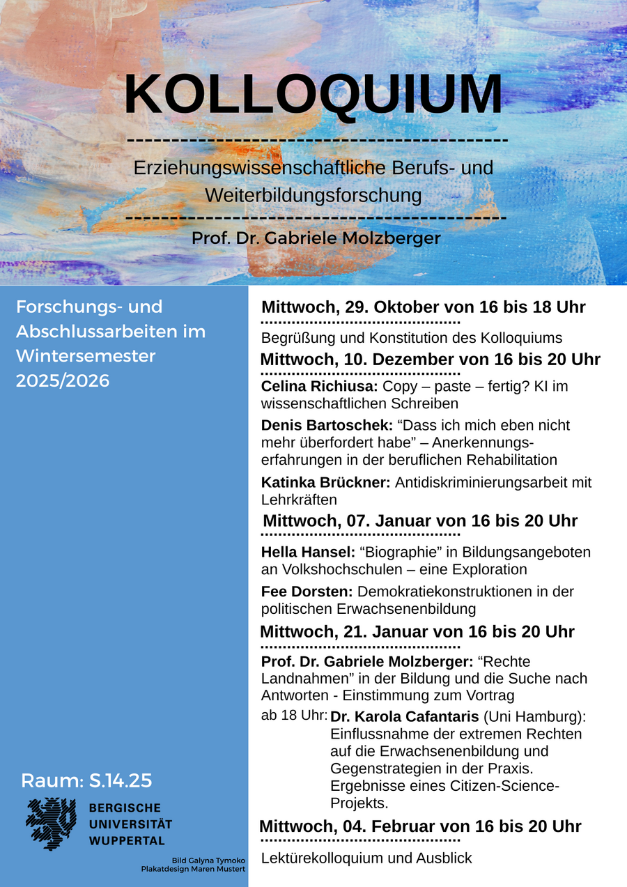 Kolloquium: Erziehungswissenschaftliche Berufs- und Weiterbildungsforschung im Wintersemester 2025/2026