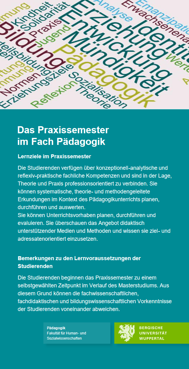 Weitere Informationen zum Praxissemester finden Sie hier.